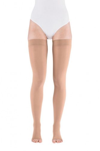 Комфортные компрессионные чулки 2-ого класса компрессии mediven comfort с открытым носком c кружевной резинкой на силиконовой основе для лечения заболеваний вен.