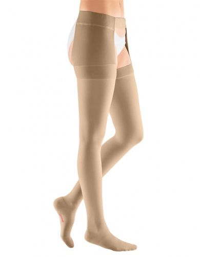 Компрессионный чулок 1-ого класса компрессии mediven plus с застежкой на талии как универсальное решение в лечении заболеваний вен.